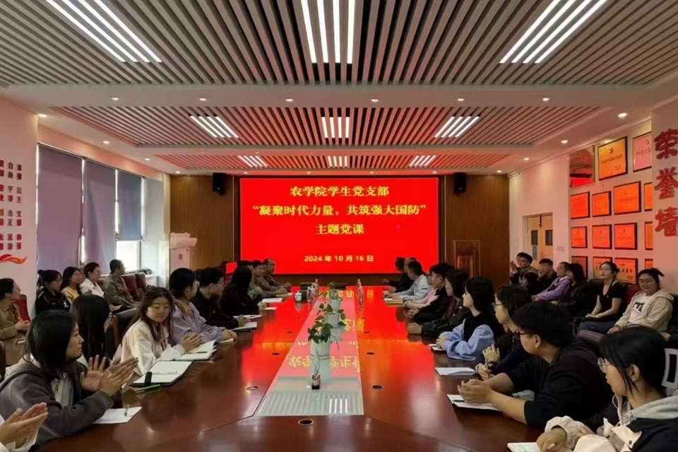 赵晨以“凝聚时代力量,共筑强大国防”为题,结合当前国际形势和国家战略需求,从“正确认识国家安全”“中国国家安全理念的内在逻辑”“巩固的国防是国家安全的战略支撑”“汇聚新时代爱国强军的磅礴力量”等四个方面,详细阐述了国防安全的重要性和必要性。他希望学生党员们厚植家国情怀,依法履行公民国防义务,居安思危,打赢人民战争,为全面建成社会主义现代化强国,实现第二个百年奋斗目标,以中国式现代化推进中华民族伟大复兴而努力奋斗。刘义国对学生党员们提出两点要求:一是厚植爱国情怀。在新时代新征程上,要更加紧密地团结在以习近平同志为核心的党中央周围,常怀报国之志,练好基本功。二是增强爱国本领。学好专业知识,提高科研创新能力,做专业扎实、创新进取的农业领域人才,凝心聚力,奋发进取,发挥党员模范作用,用实际行动支持国防建设,为国家的繁荣稳定贡献自己的力量。