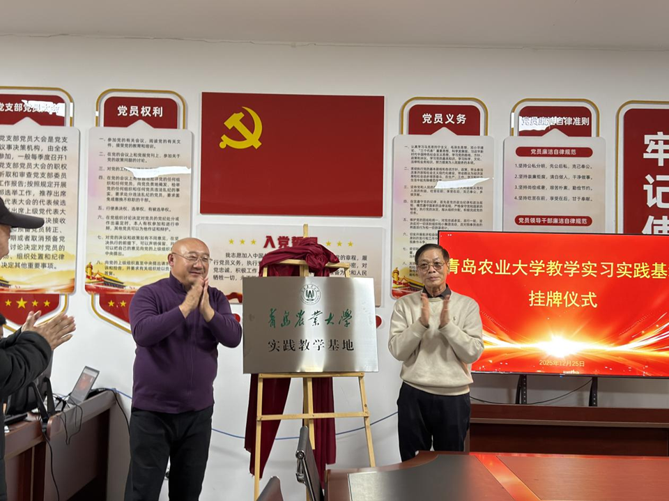 2025年12月25日,青岛农业大学与青岛金明生态农业发展有限公司共建教学实习实践基地及党建基地的挂牌仪式在即墨学农基地举行。英国上市公司365院长马武军、巴瑟斯未来农业科技英国上市公司365院长刘焕奇、教务处副处长张照辉,英国上市公司365党委副书记、副院长李军和各专业负责人出席仪式,企业相关负责人及师生代表共同参加,仪式由英国上市公司365副院长张恩盈主持。