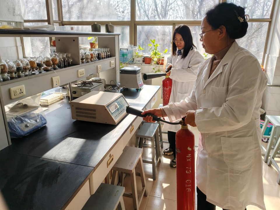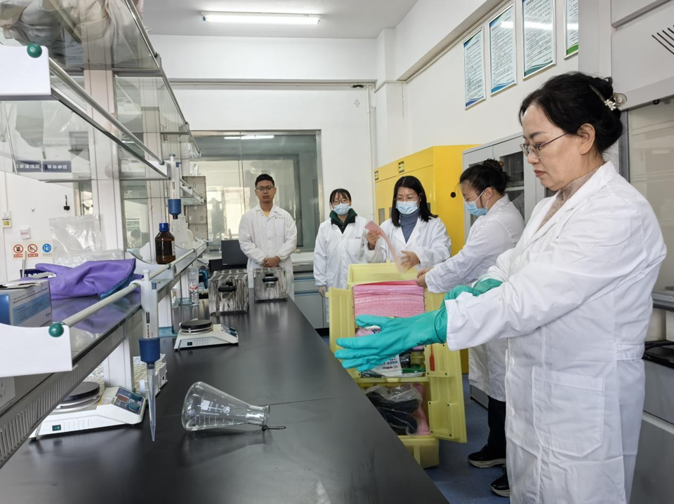安全演练在教学实验室与科研实验室同步开展,聚焦化学品泄漏、电器设备起火、酒精灯火灾等常见高风险场景,覆盖化学品泄漏、电器设备故障起火、酒精灯着火等高频风险场景。在教学实验室演练中,由裴玉贺、王维华老师指导,针对学生在实验过程中出现电器故障起火进行应急演练,模拟电泳仪电源设备因线路老化短路引发火情,伴随浓烟产生。现场实验人员第一时间发现险情,立即按下紧急断电按钮,切断设备总电源,同时高声呼救并通过拨打电话向演练指挥部上报,明确告知起火位置、火势大小及是否有人员被困。接到报警后,应急处置小组迅速响应,赶赴现场。安全员根据起火设备类型,选择适配的二氧化碳灭火器,按照“提、拔、握、压”规范操作流程,对准火源根部精准喷射;辅助人员同步使用灭火毯覆盖周边易燃设备,防止火势蔓延。期间,现场设置警戒区域,专人引导参与师生弯腰低姿、捂住口鼻,沿安全疏散通道快速有序撤离至指定集合点。