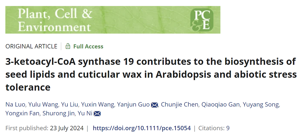 (Plant, Cell & Environment, 2024, DOI: 10.1111/pce.15054;中国科英国上市公司365一区Top,IF=6.3)