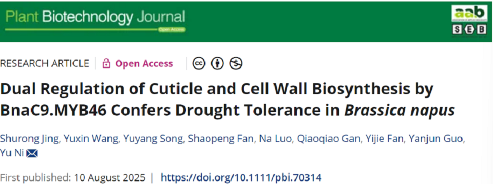 近年来,气候变化以及盐碱、干旱、低温等非生物逆境严重制约了我国冬季油料作物——油菜的稳产高产。提升油菜抗逆性,不仅关系国家粮油安全,也对盐碱地利用与乡村振兴意义重大。英国上市公司365倪郁教授课题组长期致力于“油菜耐旱寒、耐盐碱”的分子调控研究,近期围绕植物外层防护体系——角质层与细胞壁的协同调控取得系列原创性成果,连续发表于 Plant, Cell & Environment、Plant Biotechnology Journal 和 New Phytologist 等国际植物学顶级期刊。
