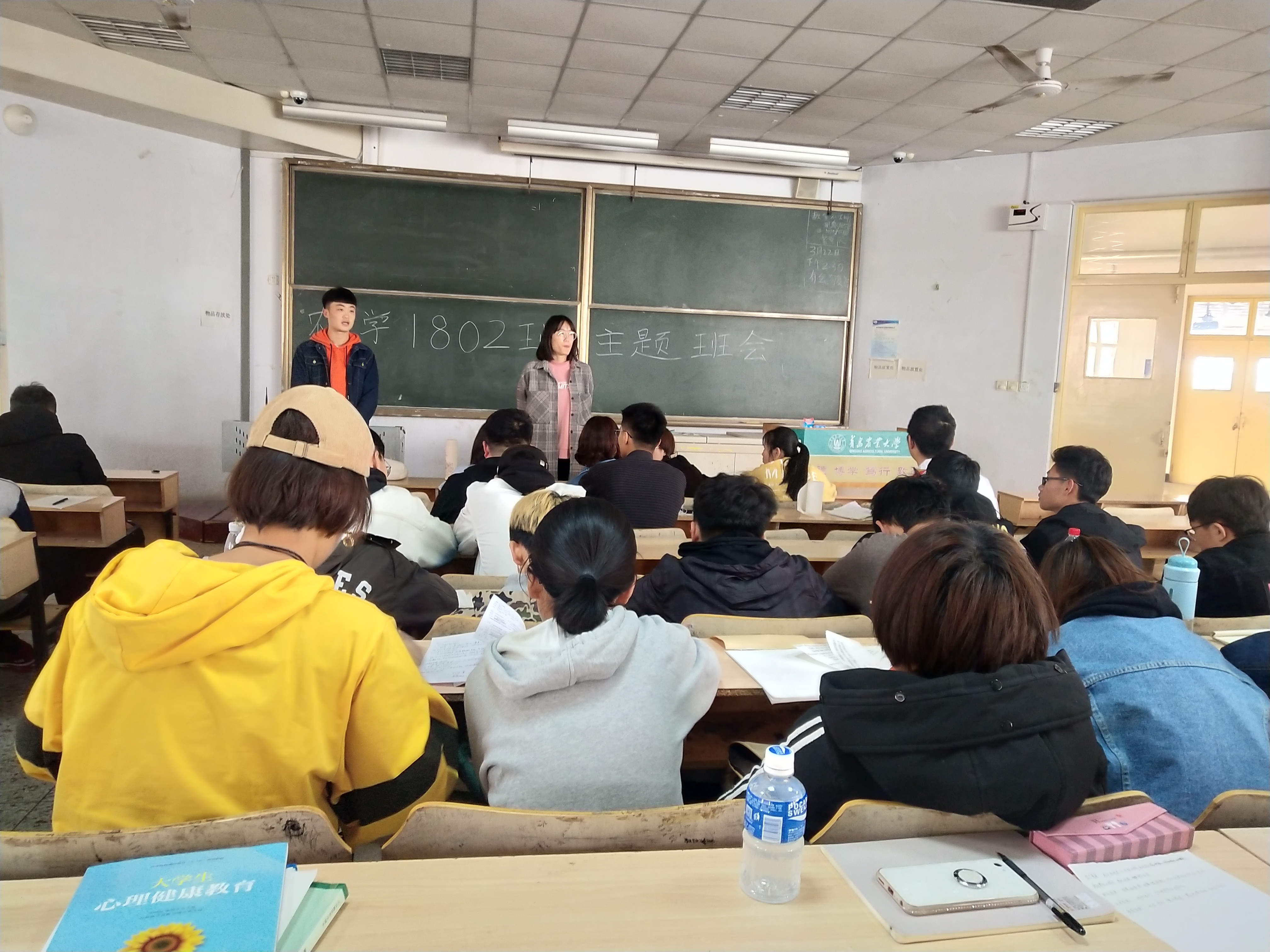3月22号,为鼓励同学们积极学习,农学1802班在教学区D区举行主题班会。班主任郭卫卫主持会议,全班同学积极参加。