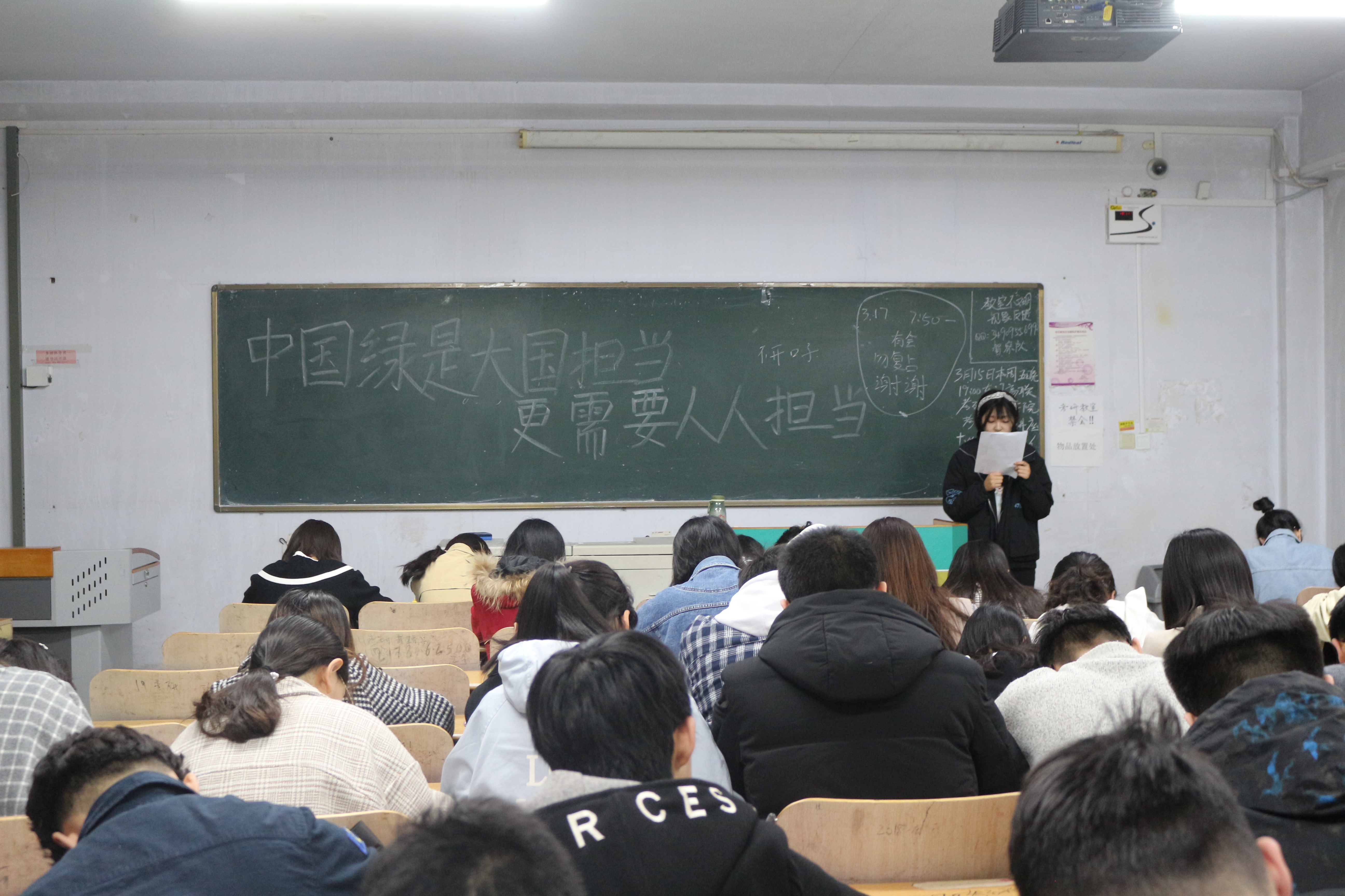 为增强同学们的环保意识和担当意识,3月17日,英国上市公司365于教学区开展“中国绿是大国担当,更需要人人担当”主题团课学习,英国上市公司3652017、2018级全体同学参加。