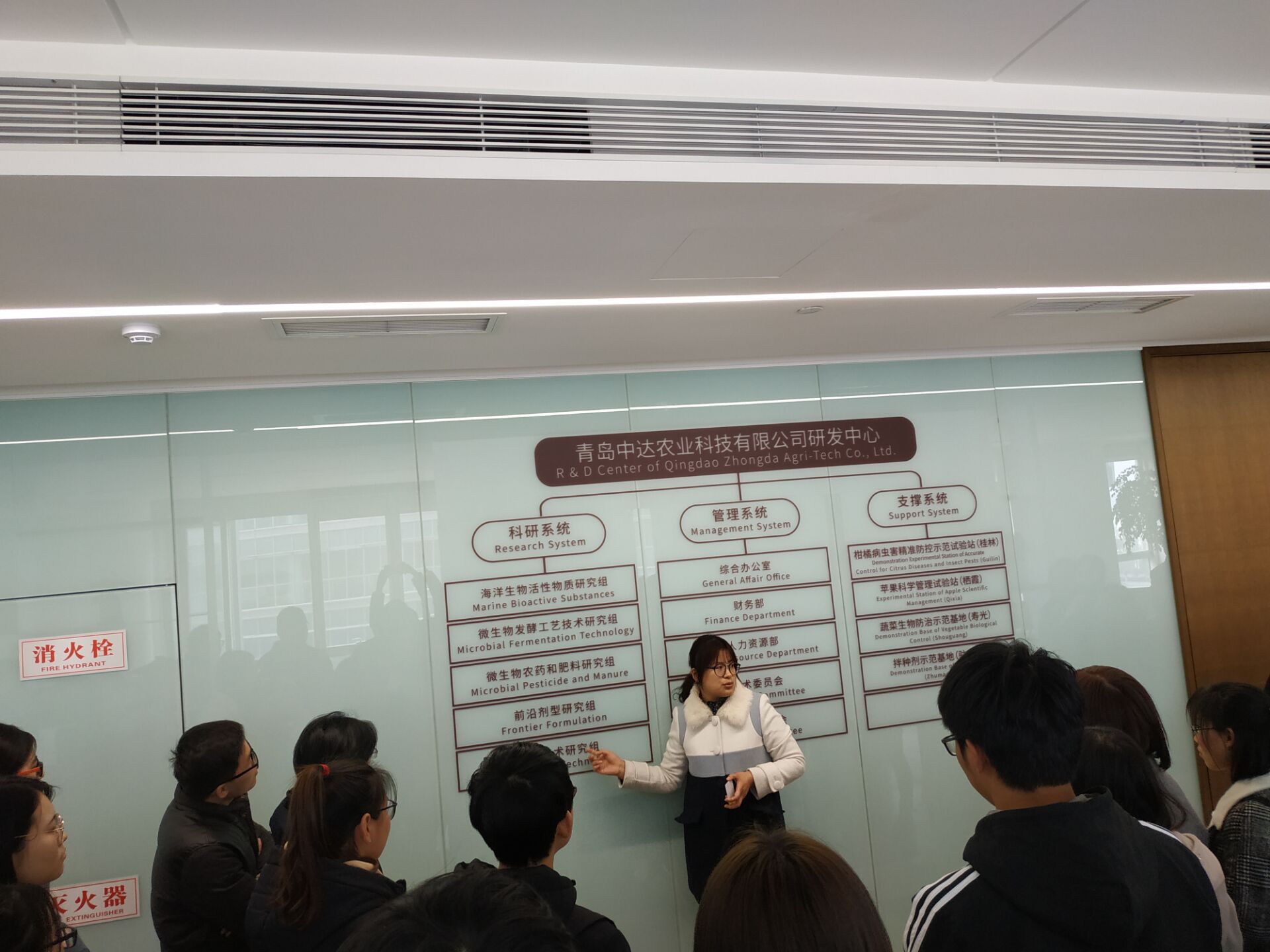 3月7日,为及时掌握行业动态,深入了解相关企业信息,为择业就业打下基础,英国上市公司365、植物医学英国上市公司365共计40余位2019届毕业生在植物医学英国上市公司365党委副书记李军、英国上市公司365辅导员谷元兴的带领下,一同前往位于青岛高新区的青岛中达农业科技有限公司进行了实地观摩考察。