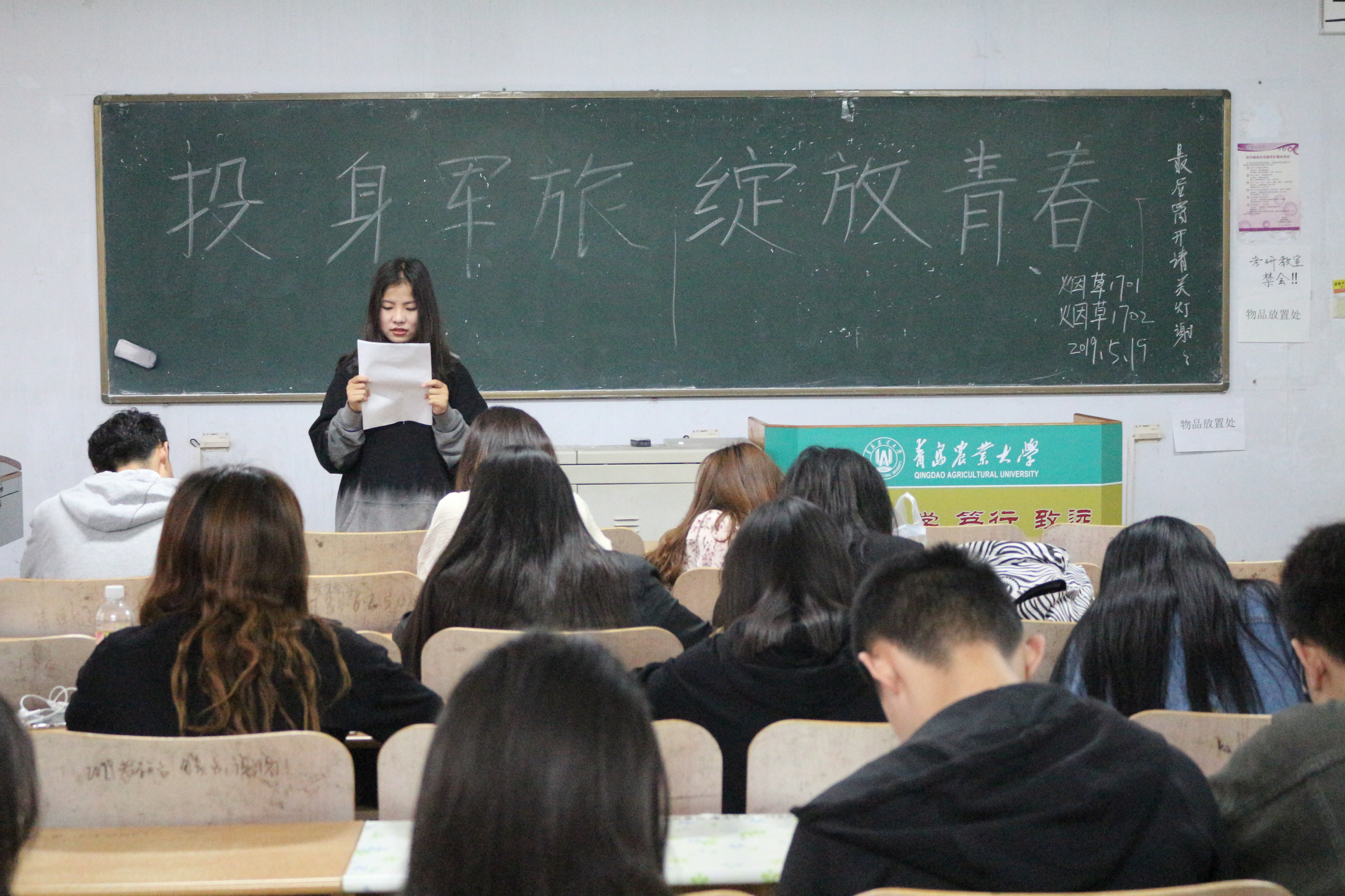 为响应习近平总书记提出的强军兴军伟大号召,鼓励当代大学生在军营中磨炼自我,5月19日,英国上市公司365于教学区开展“投身军旅,绽放青春”主题团课,英国上市公司3652017、2018级全体同学积极参加。