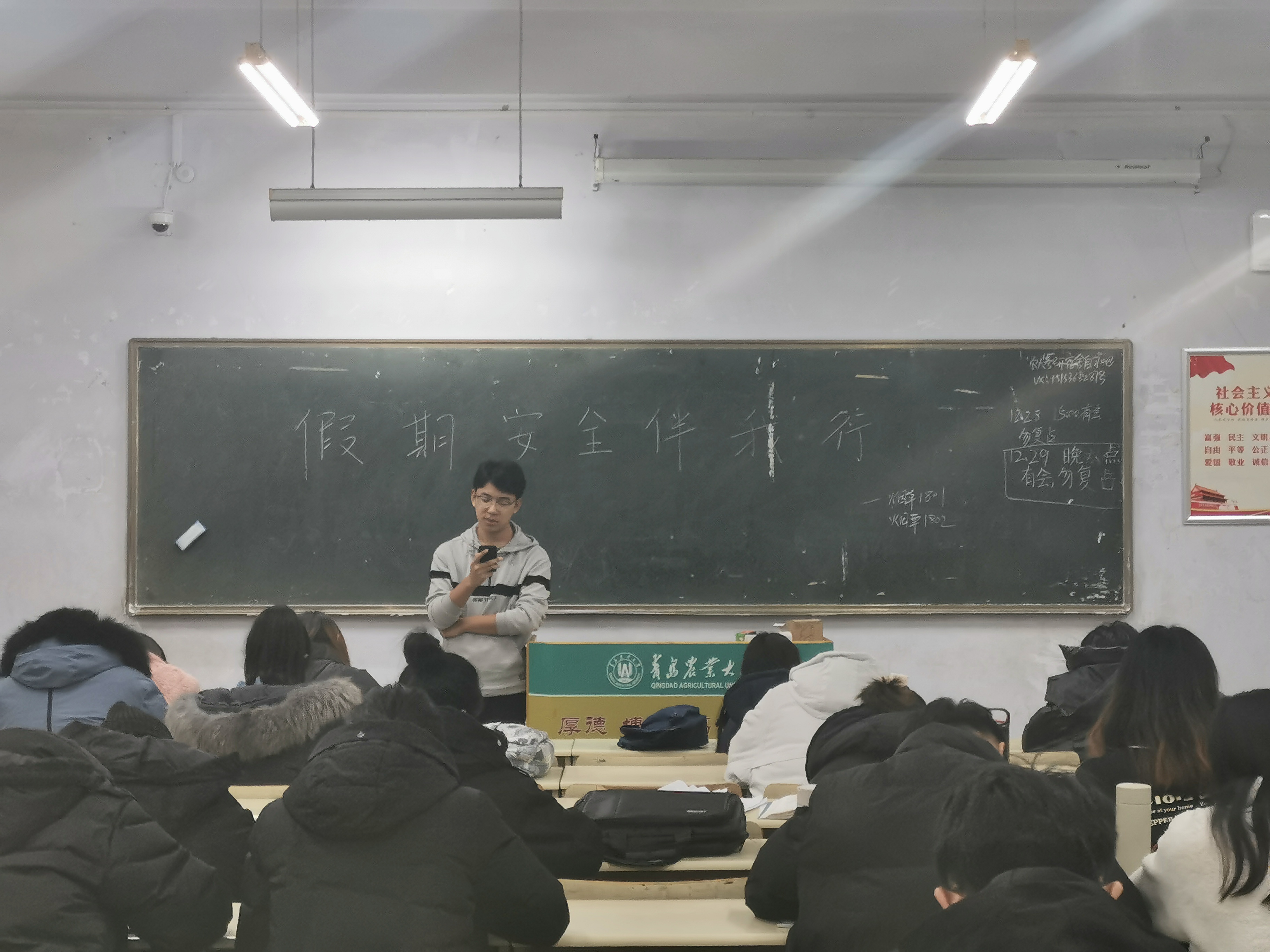 12月29日,英国上市公司365于教学区开展学习“假期安全伴我行”主题团课, 2018级、2019级全体学生积极参加。
