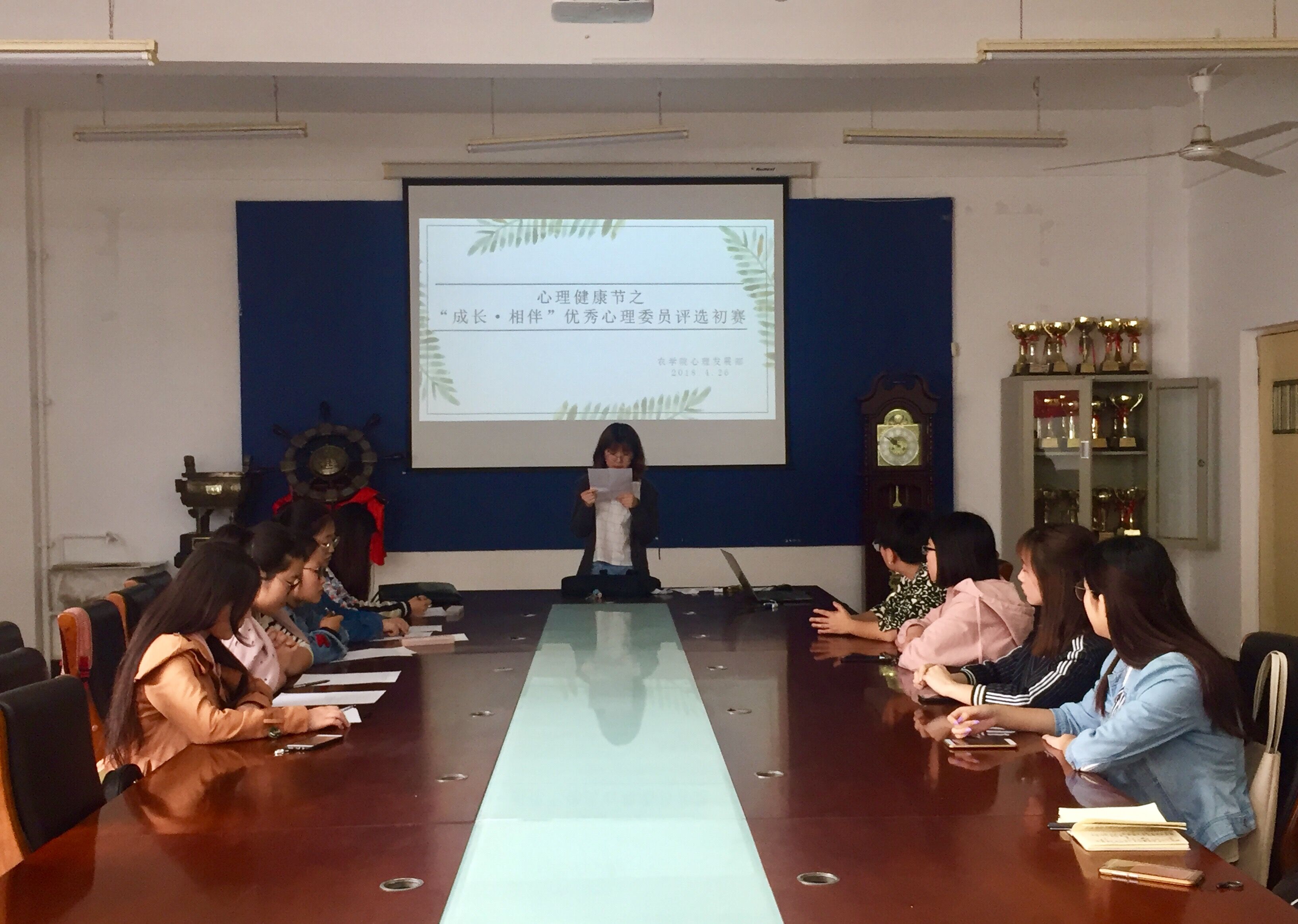为迎接英国上市公司365第十四届心理健康教育节,发挥和加强心理委员在工作中的作用,由英国上市公司365心理发展部举办的“成长·相伴”优秀心理委员评选活动初赛于4月26日中午在生物楼N区顺利举办。参加本次活动的同学是分别来自2015级、2016级和2017级的心理委员,由心理发展部全体成员担任此次活动的评委。