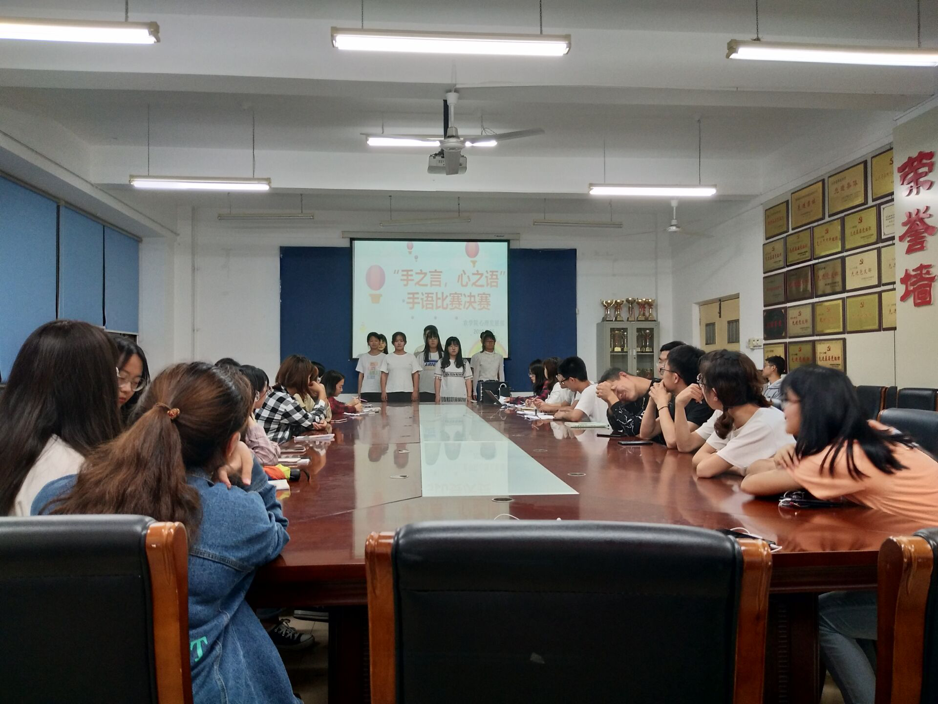 5月26日,英国上市公司365心理发展部在生物楼N区举行“手之言,心之语”手语比赛决赛。2018级约50名同学参加比赛。